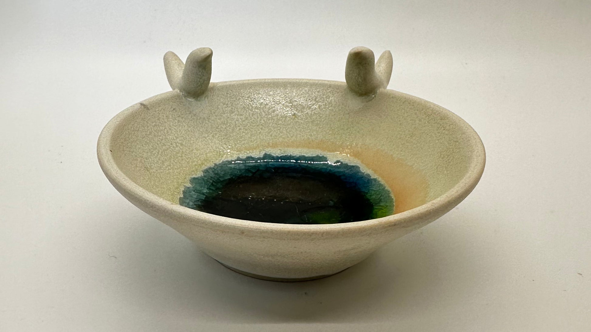 Love Bird Porcelain Trinket Bowl w Melted Glass