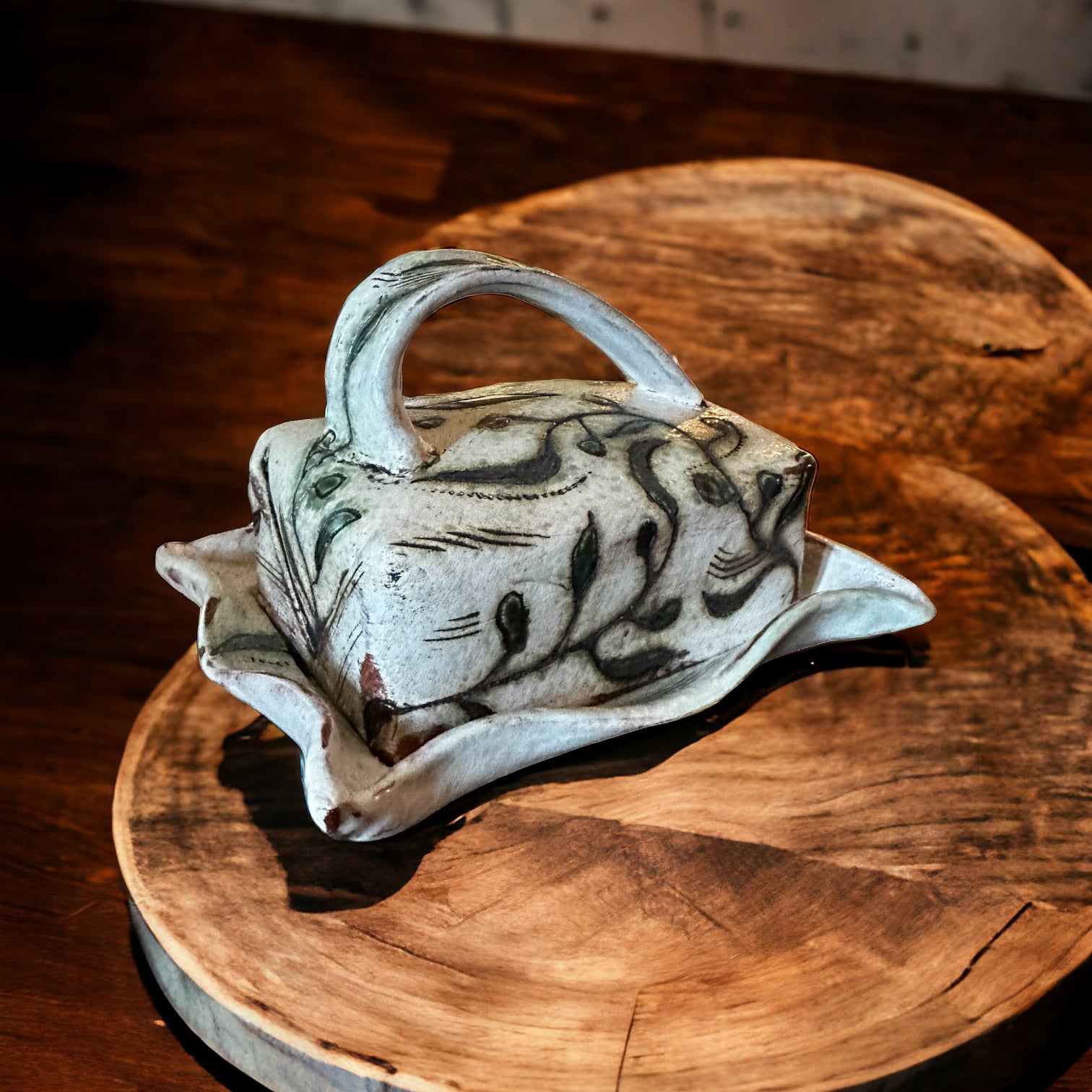 Stoneware Rustic Vine Butter Dish