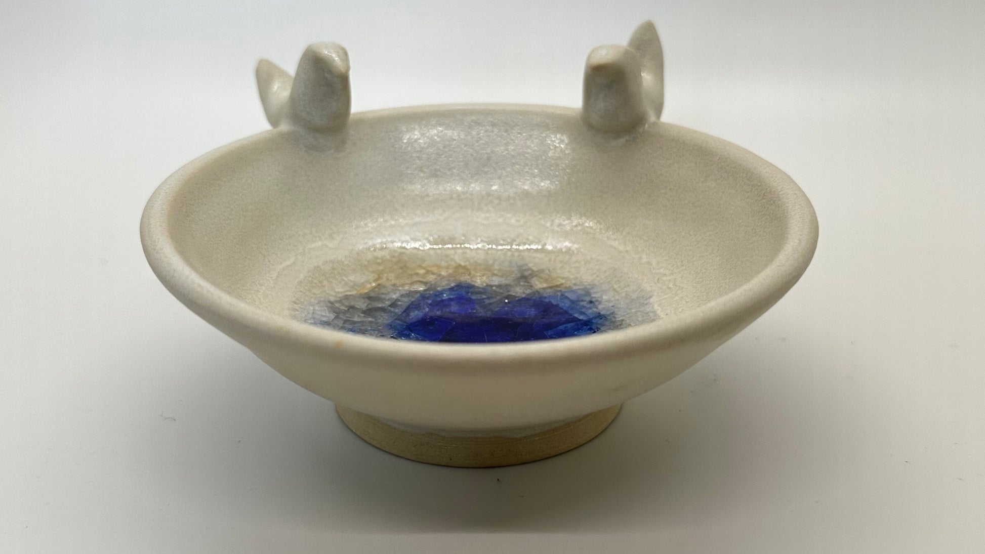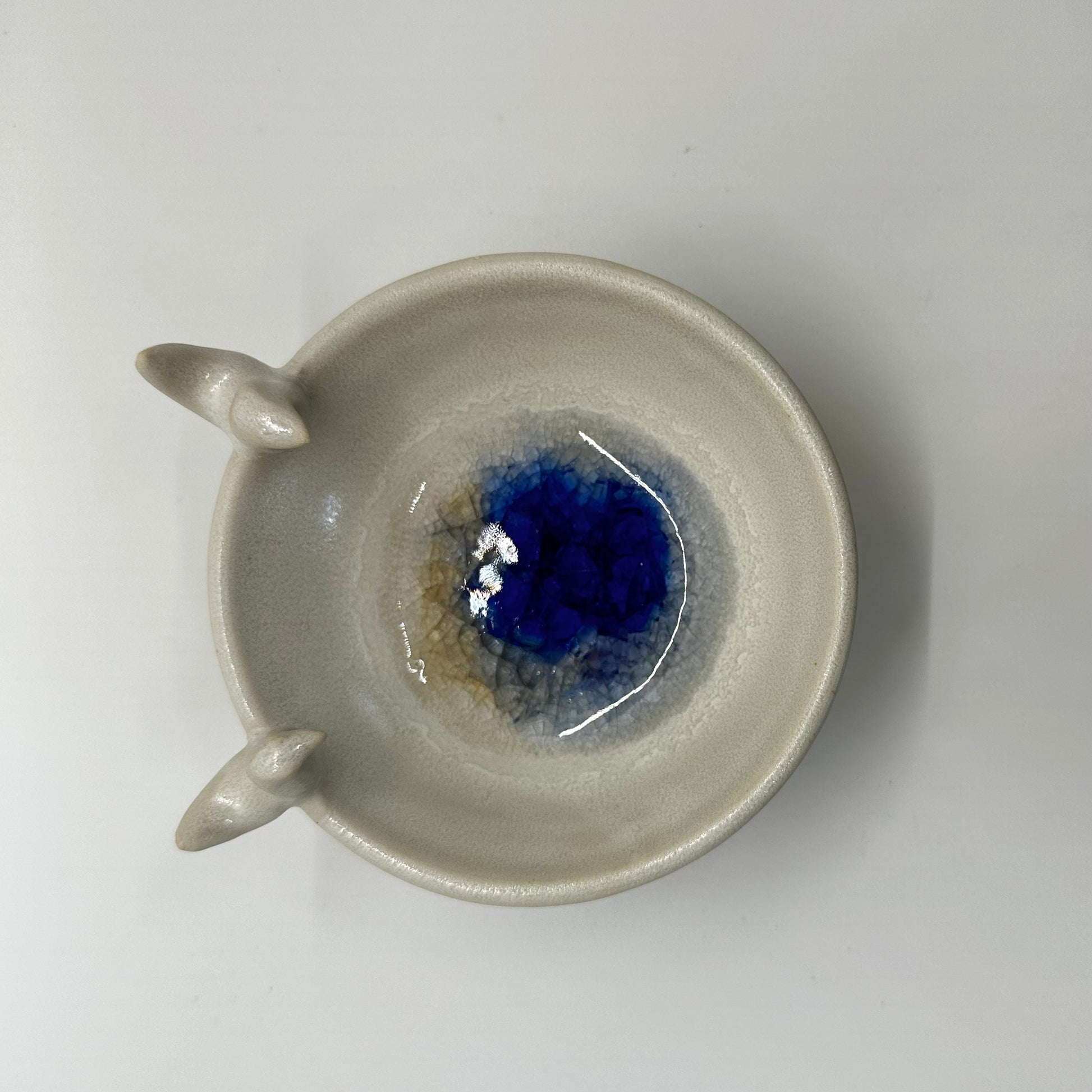 Tiny Porcelain Trinket Bowl w Melted Glass