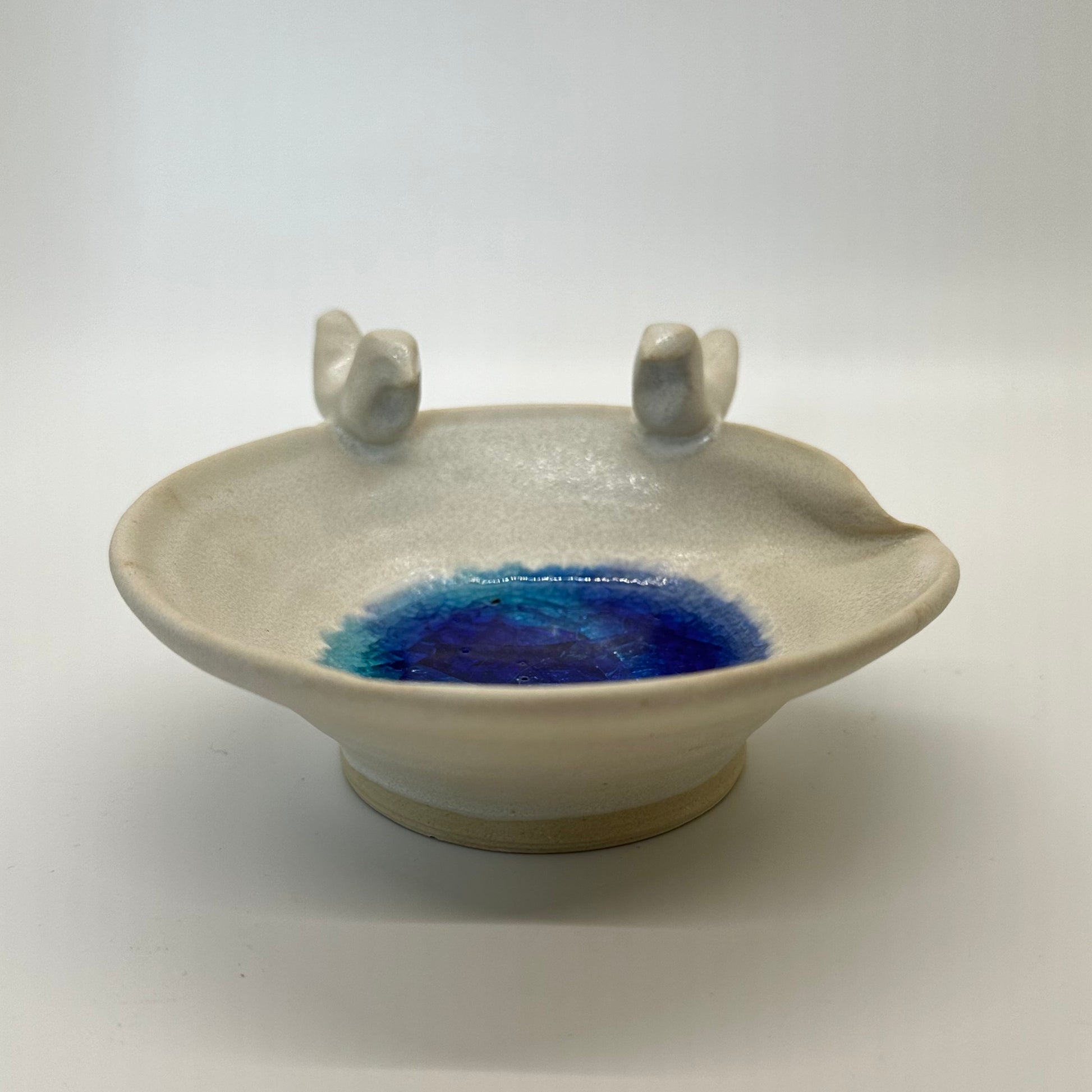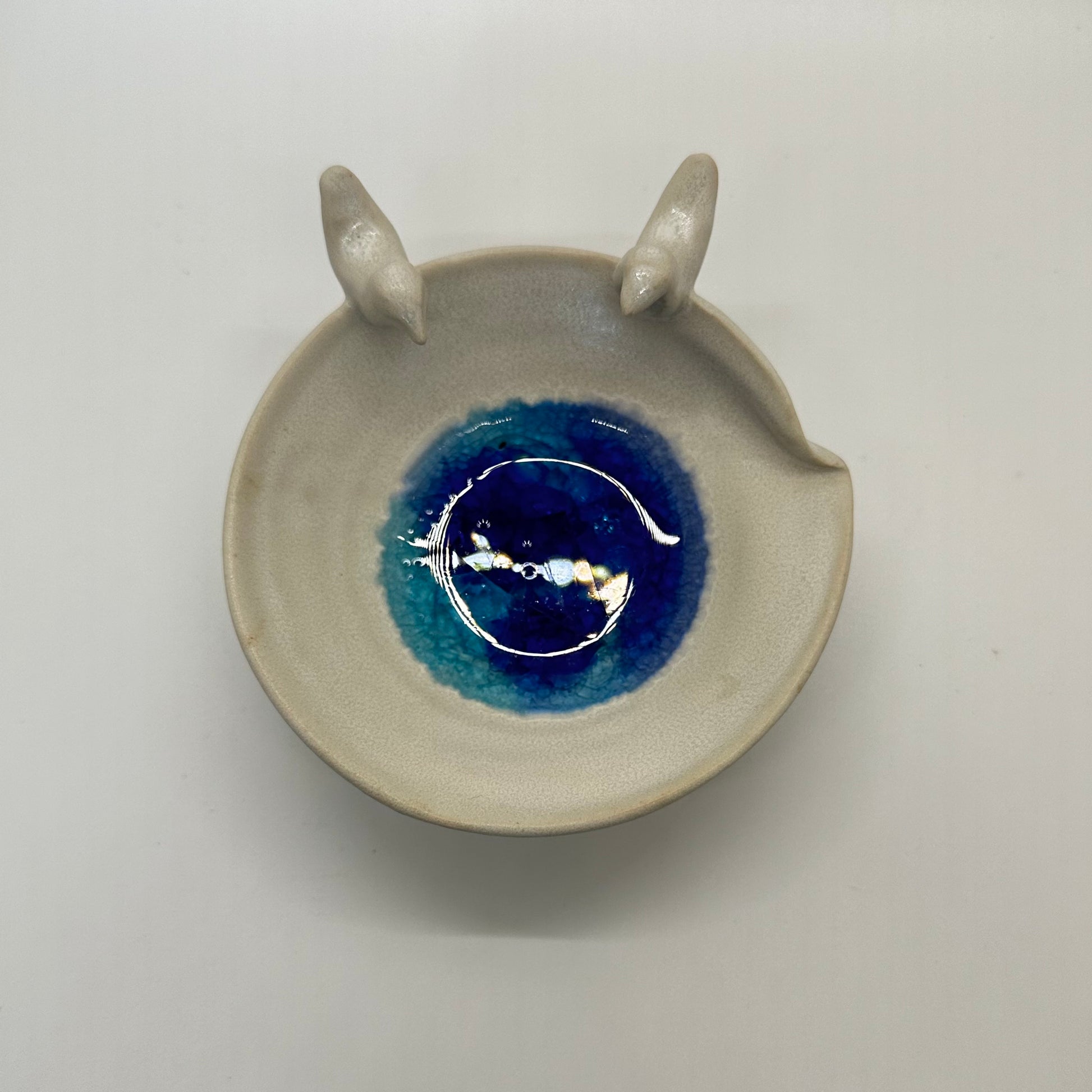 Tiny Porcelain Trinket Bowl w Melted Glass